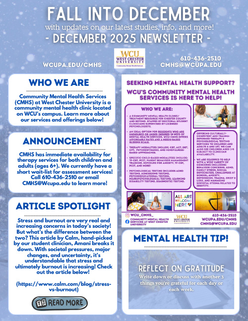 Welcome to West Chester University’s Community Mental Health Services